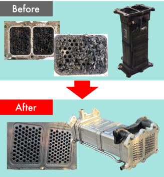 バス、トラックなどに搭載されているEGRクーラーは長期間の使用により排ガス由来のカーボンが